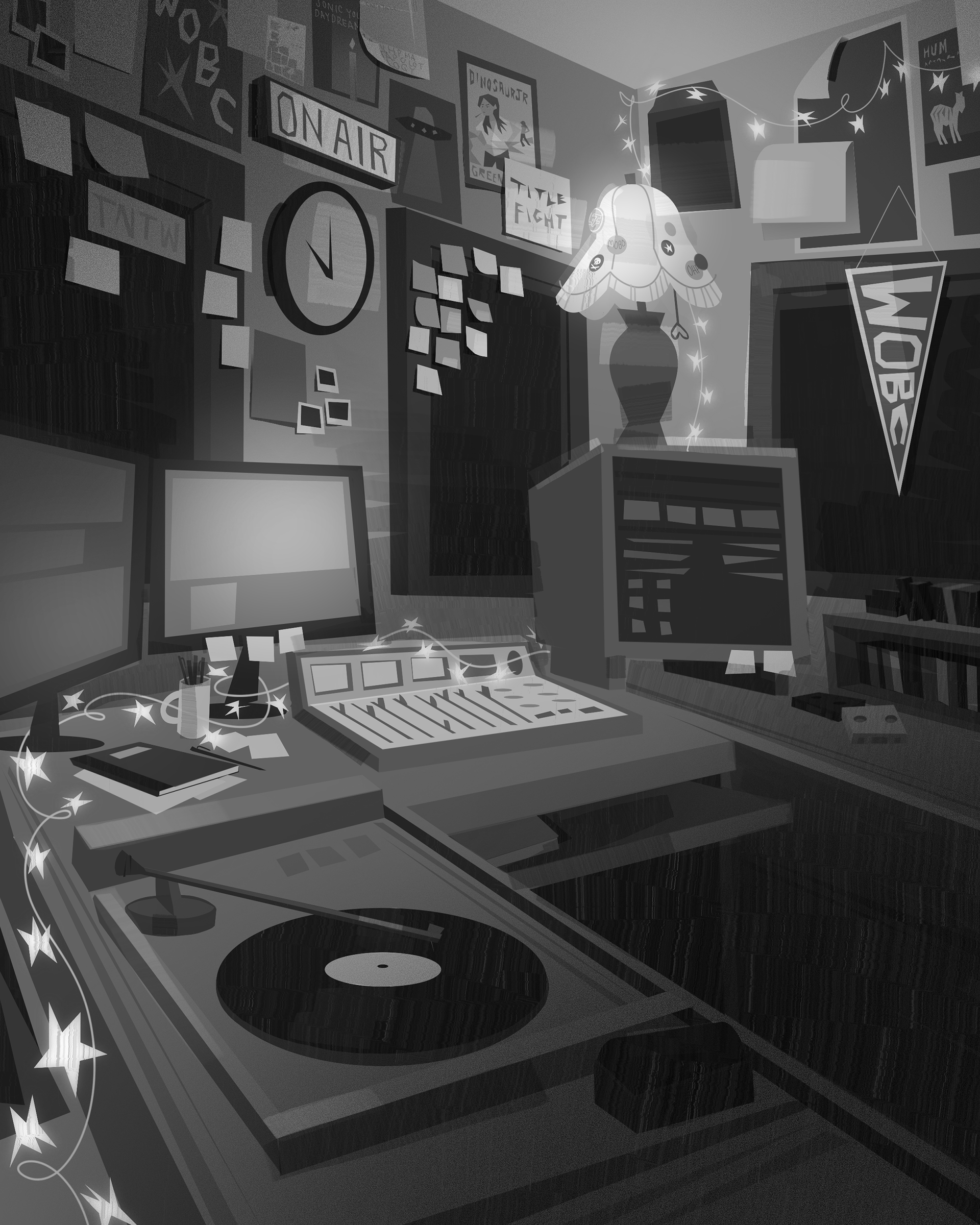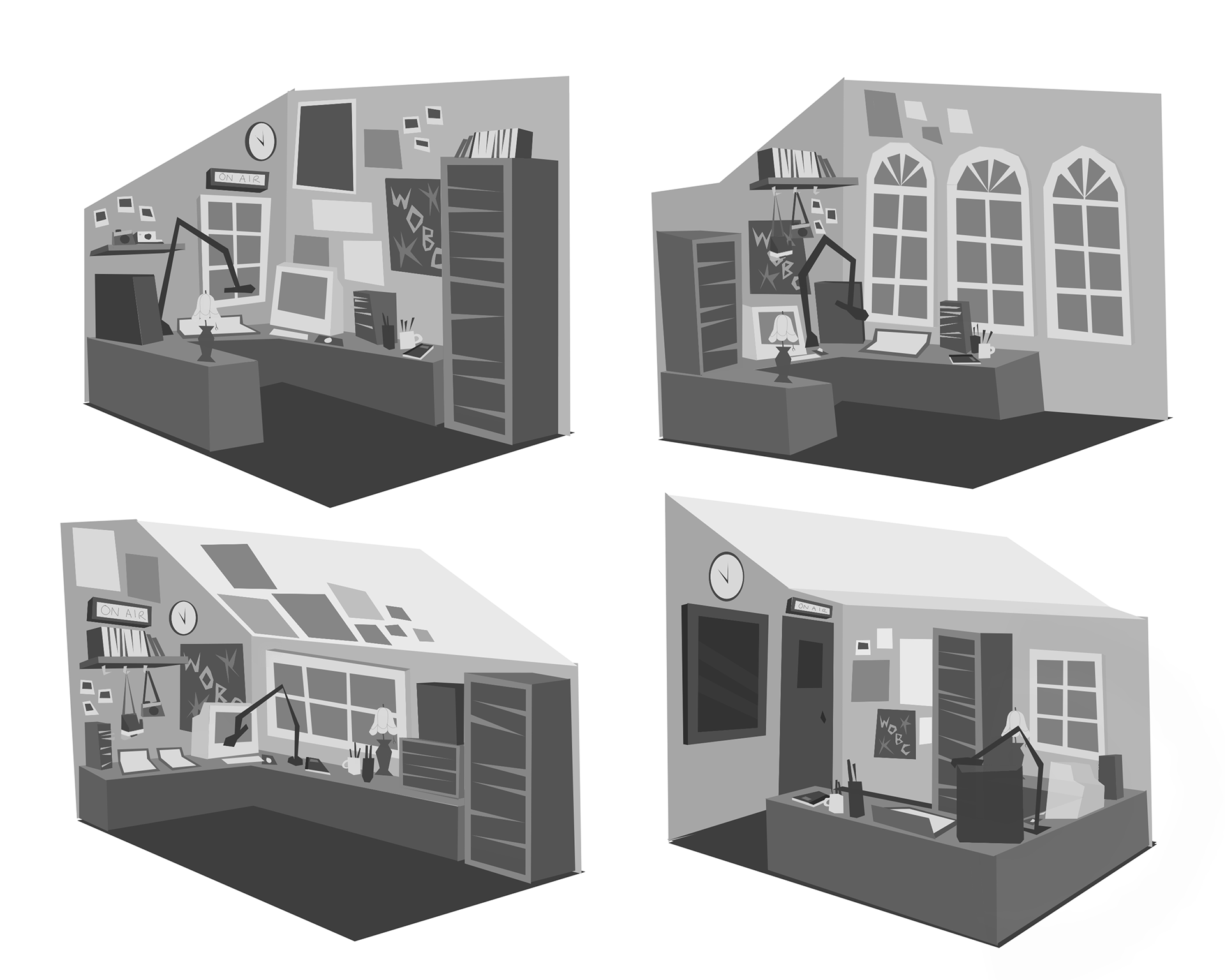 Design work from third year group film at Sheridan College, "Fin" about a boy and his ghost friend.